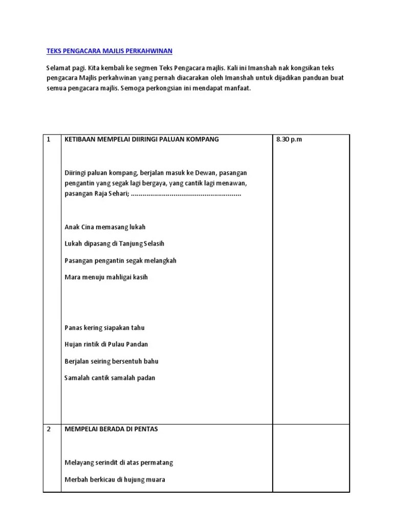 Bukan sekadar koleksi pantun, dalam buku di huraikan adat istiadat & tatasusila majlis perkahwinan melayu. Salah satu budaya yang sinonim dengan majlis perkahwinan adalah budaya berpantun. Anak panah tepi busur anak sungai dari selayang satu cinta kan hidup subur satu perkahwinan menuju gerbang. Di sini admin kongsikan 60 koleksi pantun majlis perkahwinan yang admin kumpulkan dari pelbagai sumber: 65 pantun penutup acara, bisa untuk presentasi sampai acara reuni . Gambar ini sanggup kamu download bersama mutu hd secara gratis disini. Ya allah, berkatilah majlis perkahwinan ini, limpahkanlah baraqah dan rahmat kepada kedua mempelai ini, (nama pengantin) dan (nama pengantin). Pantun usik mengusik di majlis perkahwinan. Pantun penutup tanam pisang tumbuh . Pantun penutup acara / majlis;